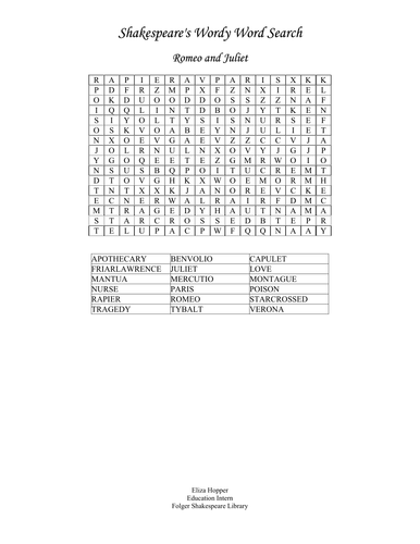 Who thinks that Romeo and Juliets marriage may end the feud. By Admin Leave a Comment. Check out this fun free Romeo and Juliet Word Search free for use at home or in school This is a printable Romeo and Juliet Word Search pdf file just click on the image to open the pdf you can save it or print it.